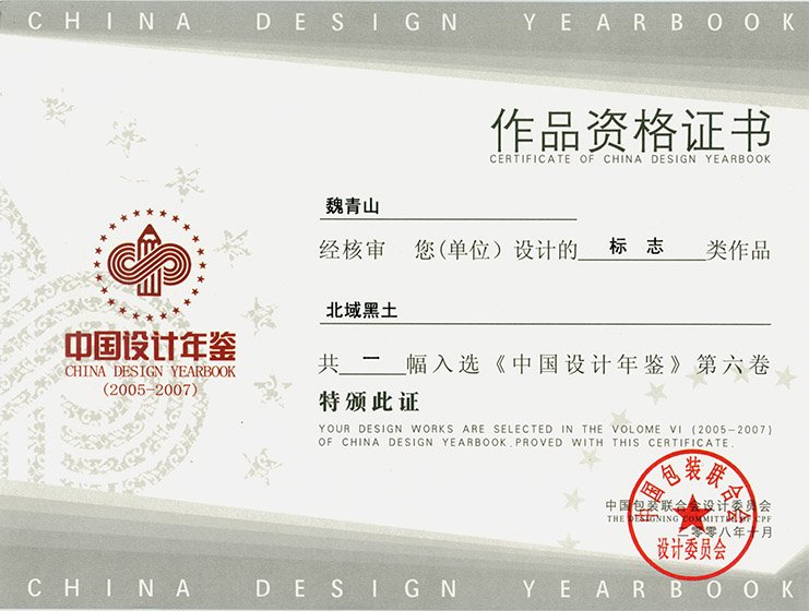 上海紅門包裝設計總監魏青山入選“中國設計年鑒”。標志類作品北域黑土。